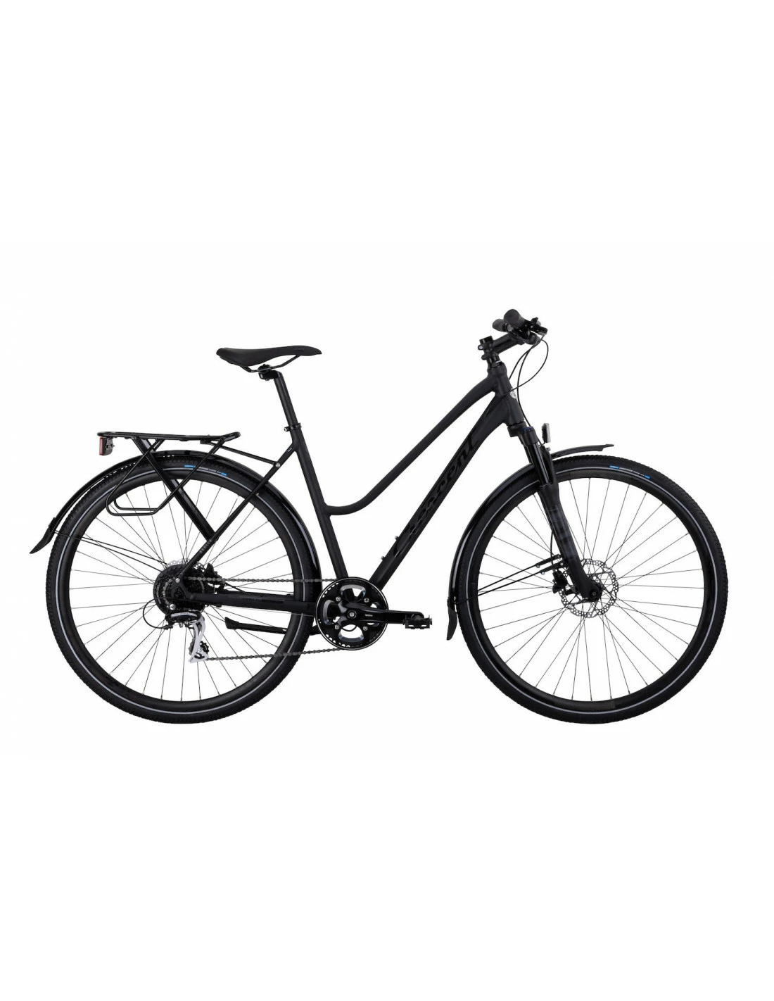 Denna hybrid är utrustad med skärmar, stöd och en pakethållare med AVS-snabbfästen, som gör att du kan sätta på väska eller korg med bara ett klick. Med 8 växlar tar du dig upp för riktigt branta backar och när du vill trampa ur den tyngsta växeln är det bara att låsa den dämpade gaffeln. Åkulla har hydrauliska skivbromsar som fungerar i vått och torrt och ger dig massor med lättdoserad bromskraft.