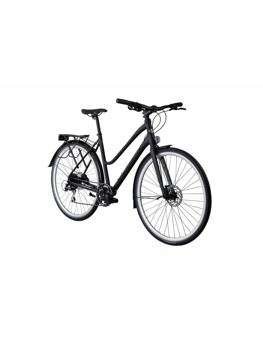 Femto är en snabbrullande pendlarcykel med lätt, stark aluminiumram med damgeometri; gjord för att du ska kunna trampa både fort och långt. Denna hybrid är utrustad med skärmar, stöd och en pakethållare med AVS-snabbfästen, som gör att du kan sätta på väska eller korg med bara ett klick. Du sitter bra på en sadel som är specialdesignad för tjejer. Läget på styrstammen kan justeras för att du ska få det raka styret i den höjd som passar dig bäst. Med 8 växlar har du rätt fart på pedalerna, oavsett om det går uppför eller utför. De hydrauliska skivbromsarna är dimensionerade för att matcha fartresurserna och fungerar lika bra i ösregn som solsken. De mönstrade däcken har valts för att rulla lätt och ha bra grepp i alla lägen.