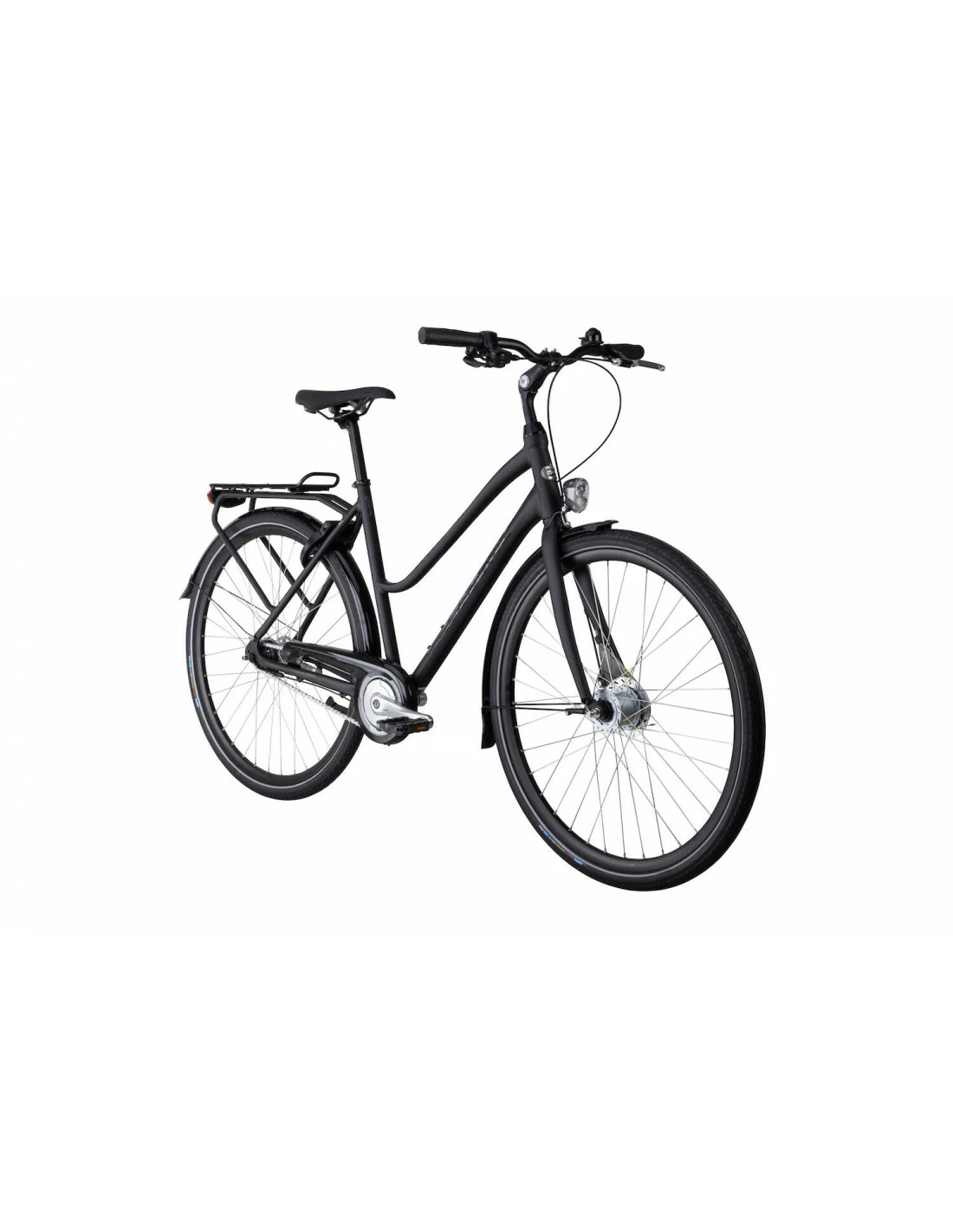 Om du vill ha en damcykel som har allt, rullar bra och kan göra det länge, då är Rissa ett bra val. Aluminiumramen är lätt, stark och rostfri. Växlar och och bromsar är skyddade både från fysisk påverkan och från regn och smuts vilket gör att de kräver ett minimum av underhåll. Med 7 växlar har du ordentliga fartresurser och kan tackla även riktigt branta uppförslut. Bak sitter en traditionell fotbroms och framhjulet bromsas med en effektiv rullbroms. Utrustningen är både tålig och väl tilltagen. Rissa har skärmar, kedjeskydd, stöd, godkänt lås och en navgenerator som driver belysningen fram. Dessutom har den en rejäl integrerad pakethållare med klicksystemet AVS som gör att du enkelt kan klicka fast väskor och korgar. Styret är lite vinklat för att ge bra ergonomi och i ändarna sitter sköna handtag monterade. Styrstammen är justerbar så du enkelt kan ställa in en position som du trivs perfekt med. Sadeln är bred, lagom mjuk. Skön, kompetent och pålitlig, vad mer kan du önska dig av en cykel för pendling?