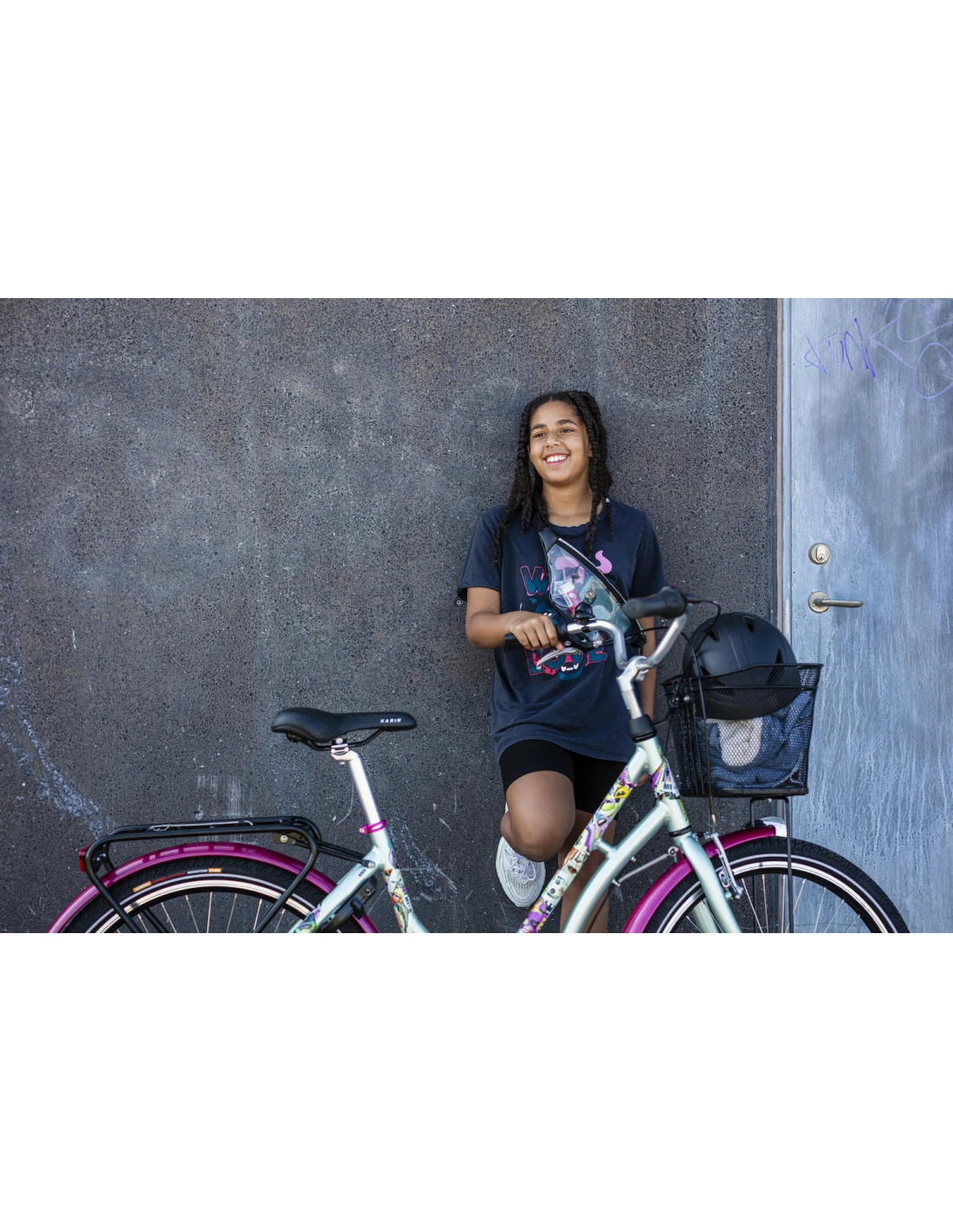 Monarks populära cykel Karin med lite mindre ram och lite mindre hjul. Nu i en limited edition! Den svängda ramen är smyckad med färg och galna bilder som sprider glädje och garanterat väcker uppmärksamhet. Det finns så många detaljer att upptäcka på cykeln, även långt efter att du cyklade på den första gången. Ramen är tillverkad i aluminium istället för stål som gör cykeln lättare och enklare att hantera. Däcken rullar bättre, sadeln är skönare, handtagen bättre anpassade för händerna och både växlar och bromsar är uppdaterade för effektivare användning. I Karin 26″ Bookmark Limited Edition får du en komplett cykel utrustad med rejäla skärmar i plåt, pakethållare, cykelkorg, lås, stöd, ringklocka, reflexer och belysning. Den här cykeln är redo för en tur så fort du är det!
