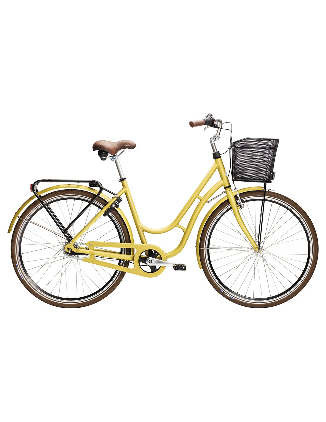 Växla upp till sju växlar på sveriges populäraste damcykel. Karin är originalet som är lika omtyckt av killar som av tjejer – av unga såväl som gamla. Designen känns igen genom den utmärkande svängda hängmatteramen som skapades för över hundra år sedan och som varsamt uppdaterats genom åren. Tjocka däck som rullar skönt och lätt gör varje tur på denna cykel angenäm. En bekväm sadel och ergonomiska handtag gör Karin till en skön cruiser, på väg hem från festen, på utflykt eller till jobbet. Rejäla skärmar i plåt, pakethållare, lås, stöd, ringklocka, reflexer och belysning, gör sig denna cykel i alla väder och oavsett kläder. Med korg fram och praktiska AVS-klickfästen för korg, låda eller väska på pakethållaren, får du med dig allt du behöver.