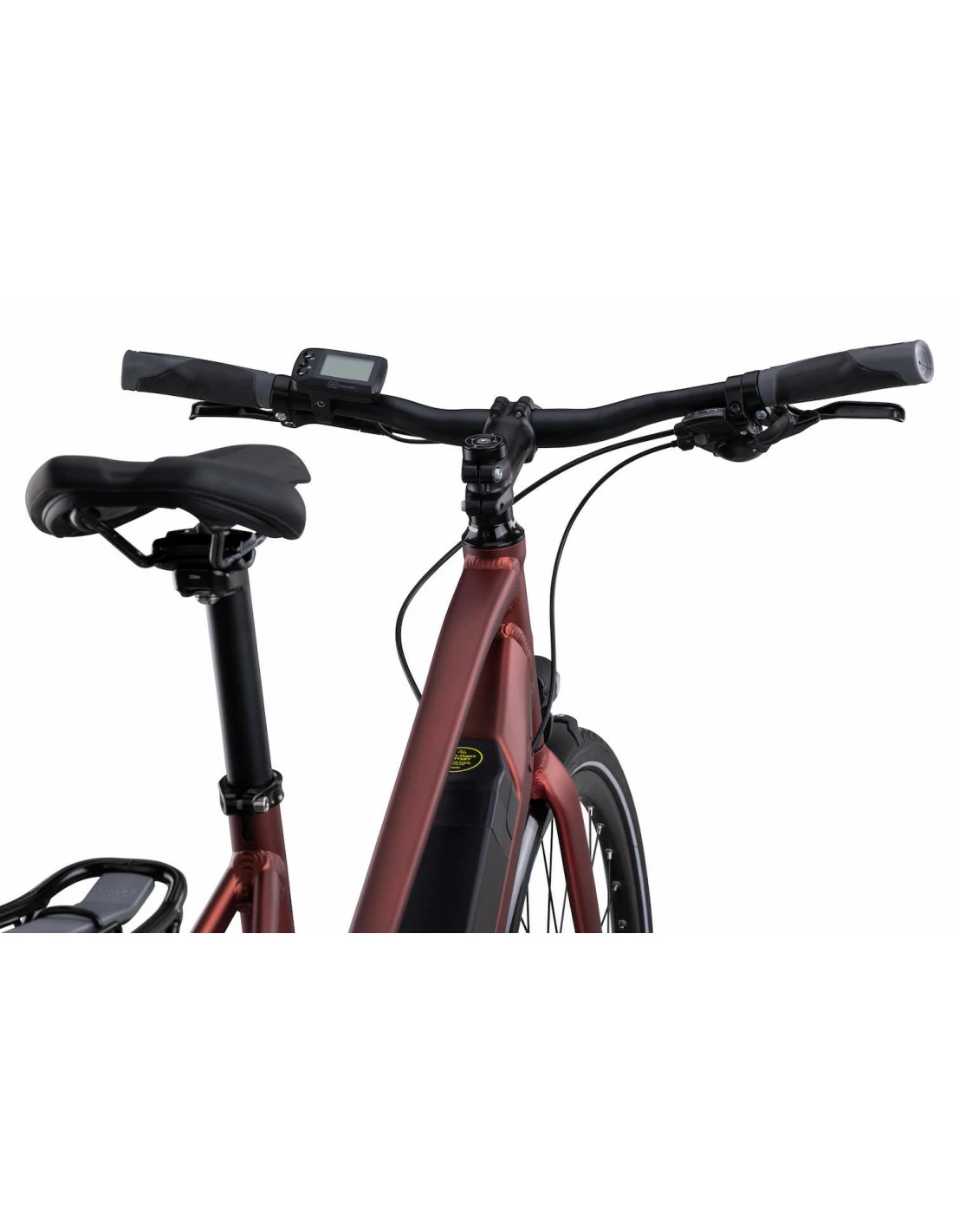 Med en ram av aluminium och sportigt avslappnad geometri sitter du lika bekvämt som på en vanlig hybridcykel. Motorn sitter centralt i vevpartiet och både den och systemet som styr den är vårt egenutvecklade EGOING. Effekten kommer helt automatiskt utan att du behöver göra något annat än att trampa. Pedaltrycket mäts av sensorer och motorn svarar med en kraft som motsvarar din insats. Vill du ha mer eller mindre hjälp så är det bara att trycka på en knapp så ändras effektuttaget. En tydlig LCD-display visar effektläge, hastighet, batteriets laddnivå och hur långt den kraften kan ta dig. Med Koppla Smart cykelteknologi kopplar du upp din cykel via en app som håller dig uppdaterad om service och underhåll. Denna cykel har Koppla Light vilket innebär att din cykel kan anpassas efter din körstil och ditt batteri blir stöldskyddat genom att det binds elektroniskt till att endast fungera på din cykel. Det gör ditt batteri obrukbart och oattraktivt för tjuven. Genom att starta appen för att registrera dina cykelturer får du koll på din cyklig och vad den gör för miljö och hälsa. Batteristatus efter senaste cykelturen har du också bekvämt tillhans i mobilen. Elly har 8 växlar från Shimano och utrustad med skärmar, godkänt ramlås, belysning och stöd.